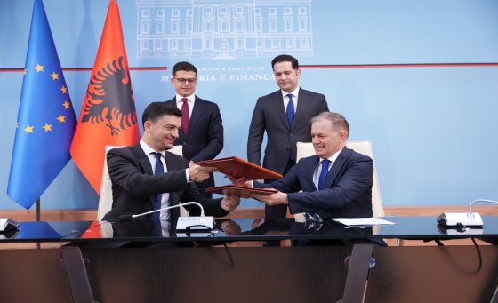 Në ambientet e Ministrisë së Financave, u nënshkrua sot marrëveshja e bashkëpunimit ndërmjet Drejtorisë së Përgjithshme të Doganave dhe Autoritetit të Kontrollit Shtetëror të Eksporteve. Marrëveshja u firmos nga Drejtori i Përgjithshëm i Doganave, Z. Genti Gazheli dhe Drejtori i AKSHE-së, Z. Andrea Shllaku, në prani të Ministrit të Financave, Petrit Malaj dhe Ministrit të Mbrojtjes, Pirro Vëngu.