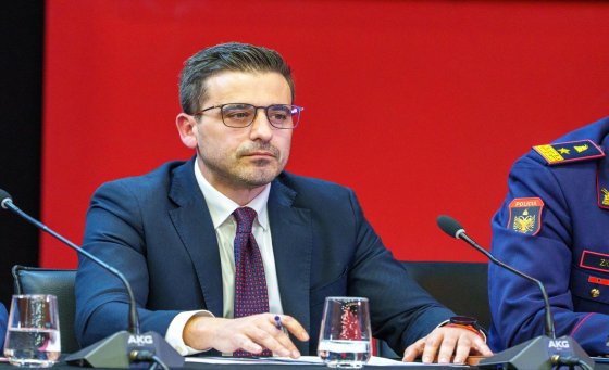 Tiranë, 24.02.2026 - Në konferencën e përbashkët për mediat, ku ishin të pranishëm drejtues të Autoritetit Rrugor Shqiptar, Hekurudhës Shqiptare, Shërbimit Gjeologjik Shqiptar, Agjencisë Kombëtare të Mbrojtjes Civile dhe Policisë së Shtetit, Drejtori i Përgjithshëm i Doganave, Besmir Beja, paraqiti masat e ndërmarra nga Dogana Shqiptare pas bllokimit të aksit Librazhd–Elbasan.